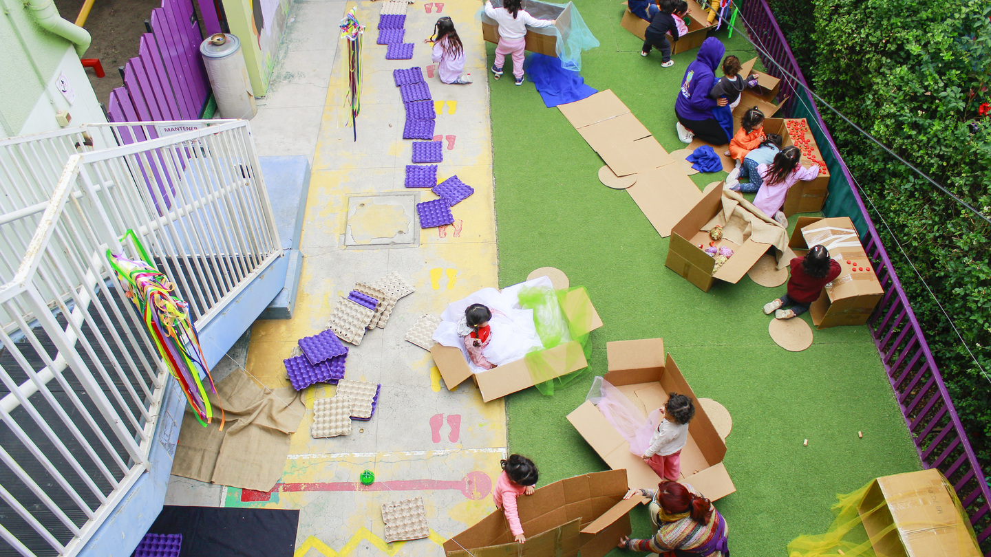 Durante estas actividades, las y los pequeños exploraron, imaginaron y crearon arte a través del juego libre. Telas, maderas, cuerdas y cajas se transformaron, con ayuda de su creatividad y curiosidad, en túneles, castillos y mundos imaginarios, estimulando todos sus sentidos y fomentando el aprendizaje mediante la experimentación libre con los espacios lúdicos propuestos.