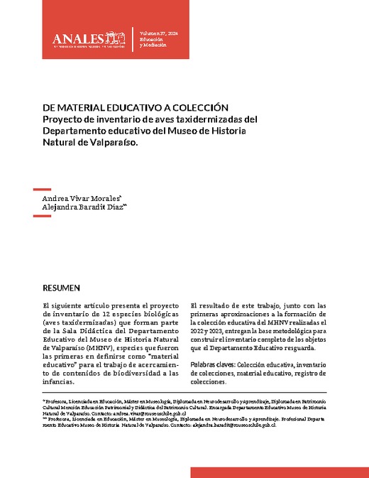 De material educativo a colección. Proyecto de inventario de aves taxidermizadas del Departamento educativo del Museo de Historia Natural de Valparaíso